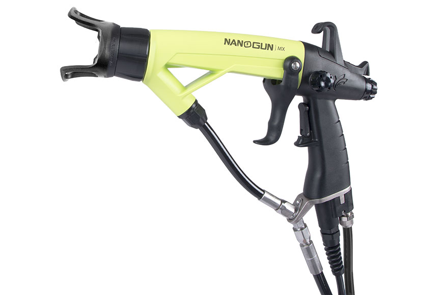 Pistolet natryskowy NANOGUN-MX został opracowany, by odpowiadać na zapotrzebowanie rynków o wysokim poziomie produkcji, takich jak rynek kosmiczny, rolniczy, metalowy, budowlany, meblarski, transportowy lub energetyczny.