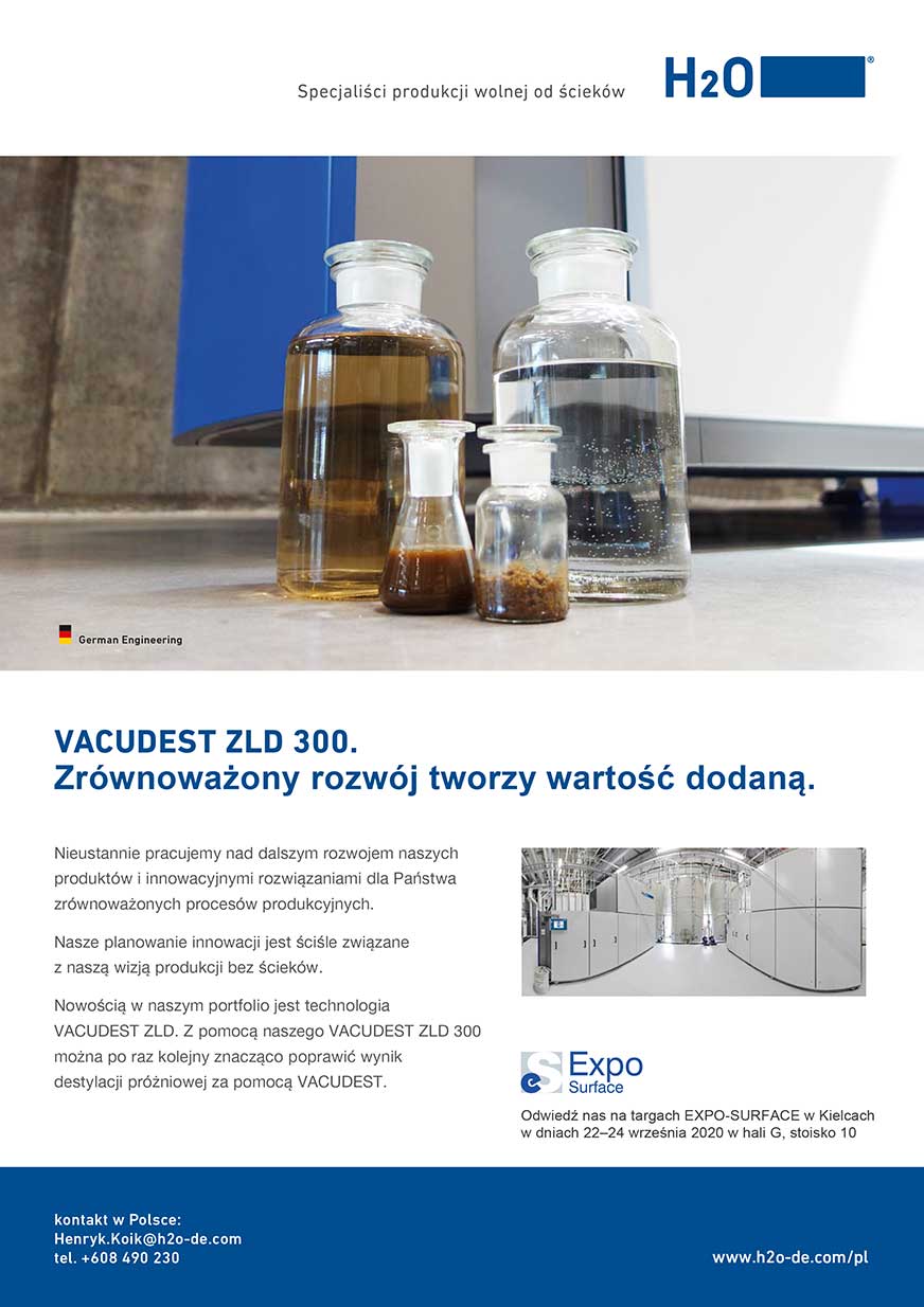 Firma H2O nieustannie pracuje nad rozwojem swoich produktów i innowacyjnymi rozwiązaniami dla zrównoważonych procesów produkcyjnych. Jej wizją jest produkcja bez ścieków. Nowością w ofercie firmy jest technologia VACUDEST ZLD 300, dzięki której można znacząco poprawić wynik destylacji próżniowej.