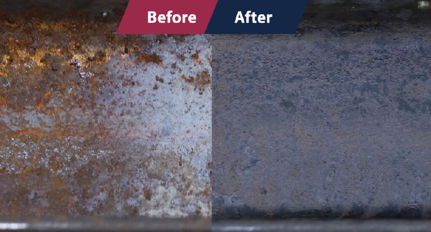 Użytkownicy muszą jedynie usunąć z powierzchni luźne zanieczyszczenia i słabo przylegającą rdzę, a następnie wykonać etap odtłuszczania, aby wyeliminować wszelkie zanieczyszczenia, które mogą zakłócać reakcję chemiczną. Następnie na zardzewiały obszar nakładana jest cienka warstwa Ferrozinc, a w ciągu 30 minut powierzchnia zmienia kolor na czarny/granatowy, wskazując na udane usuwanie rdzy. Nadmiar produktu można łatwo zetrzeć, a po zaledwie trzech godzinach powierzchnia jest gotowa do pokrycia preferowanym przez użytkownika systemem powłoki wykończeniowej.