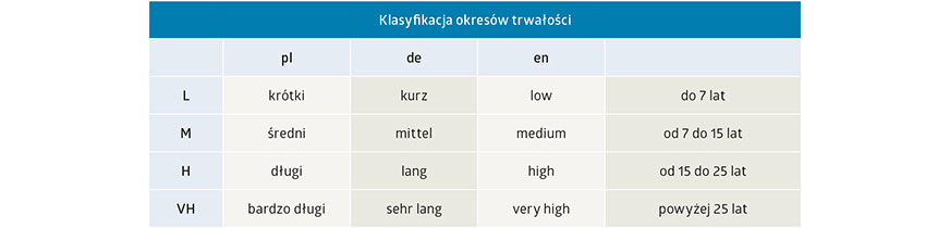 Część 1 „Ogólne wprowadzenie”. Pierwsza istotna zmiana to zmiana w zakresie okresu trwałości. Okres trwałości aktualnie został zdefiniowany w sposób pokazany w tabeli 1.