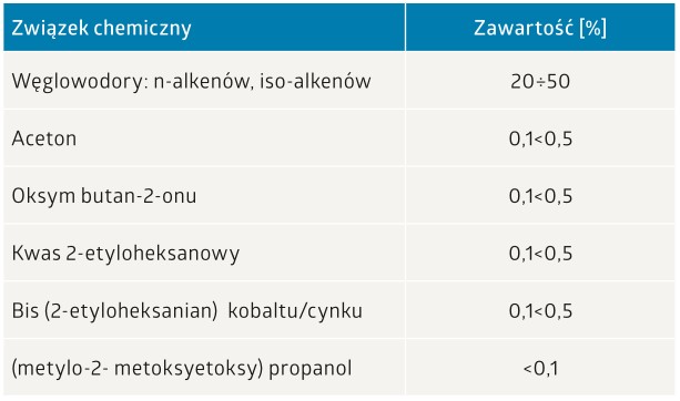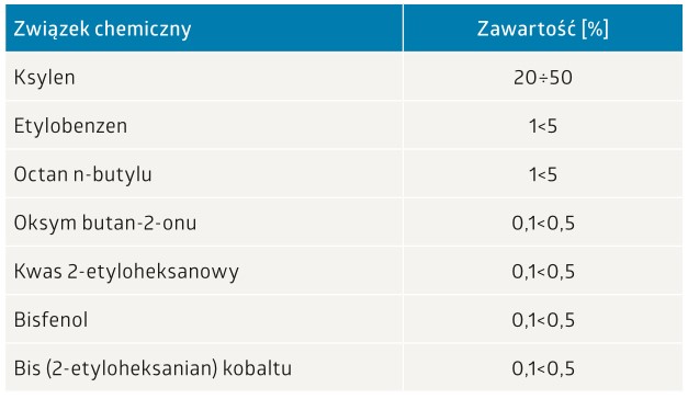 Tabela 1. Skład chemiczny powłoki chlorokauczukowej producenta Śnieżka [7].