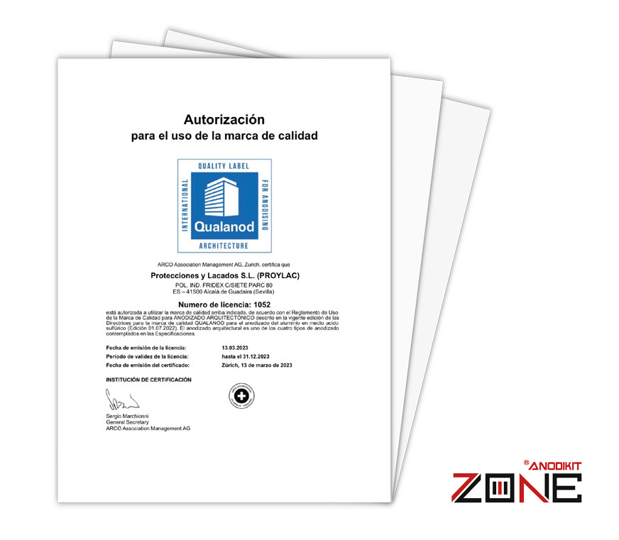 Certyfikat homologacji QUALANOD dla instalacji Anodikit® ZONE przyznany firmie PROYLAC