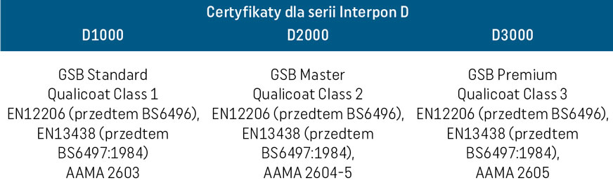 - Interpon D XPRO – podwyższona odporność na zarysowania w 2 klasie QC;