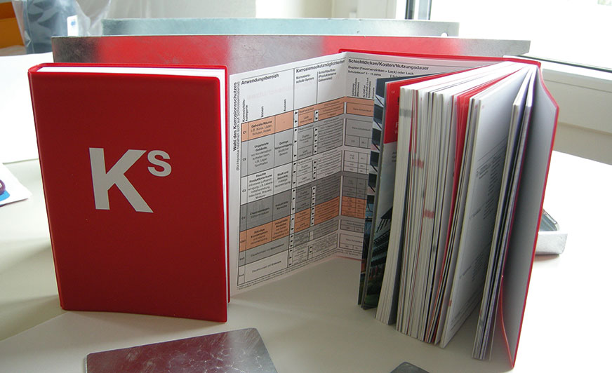 Galvaswiss daje do dyspozycji fachowcom z dziedziny obróbki metali kompaktowy, poręczny poradnik dot. tematu ochrony antykorozyjnej budowlanych elementów metalowych i stalowych – „KS”. W książce tej użytkownicy znajdą obszerne informacje, dokładne tabele doboru odpowiedniej ochrony antykorozyjnej oraz wiele rad dotyczących zastosowania elementów stalowych. Poradnik można ściągnąć za pośrednictwem strony internetowej Galvaswissu lub załadować w formie pliku PDF: (http://galvaswiss.ch/de/bestellung-ks-ratgeber).