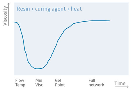 Przebieg procesu polimeryzacji jako zależność zmiany lepkości/gęstości/od czasu wygrzewania.