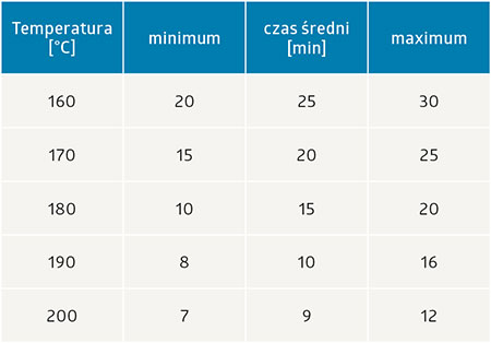 Przykładowe „curing window” dla farb poliestrowych (standardowych).