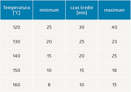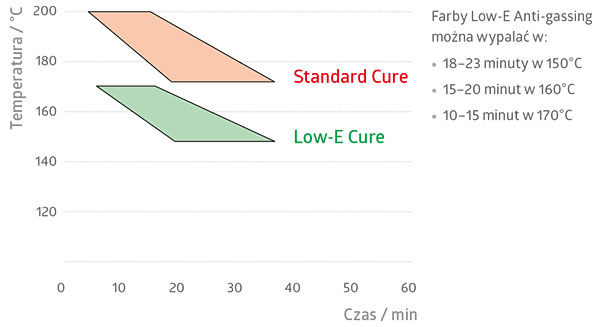 Przykładowe „curing window” dla farby niskotemperaturowej.