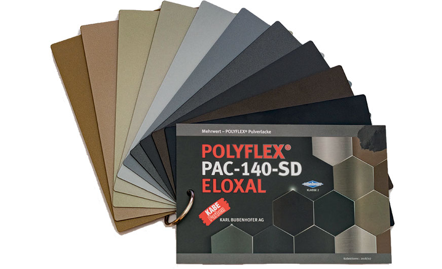 Celem firmy Karl Bubenhofer AG jest dostarczanie użytkownikom nowoczesnych, bezpiecznych i ekologicznych rozwiązań za pośrednictwem jej całego łańcucha dystrybucji. Wszechstronne gamy produktów POLYFLEX® PAC-140-SD i PES-50 obejmują niezawierające substancji niebezpiecznych głęboko matowe farby proszkowe o dobrej rozlewności. Produkty te stanowią proste, odporne na starzenie rozwiązanie, które spełnia wymagania wielu różnych użytkowników i nadaje się idealnie do szerokiej gamy zastosowań.