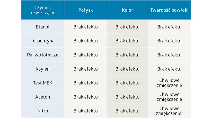 • Znakomita odporność chemiczna (ochrona podłoża)