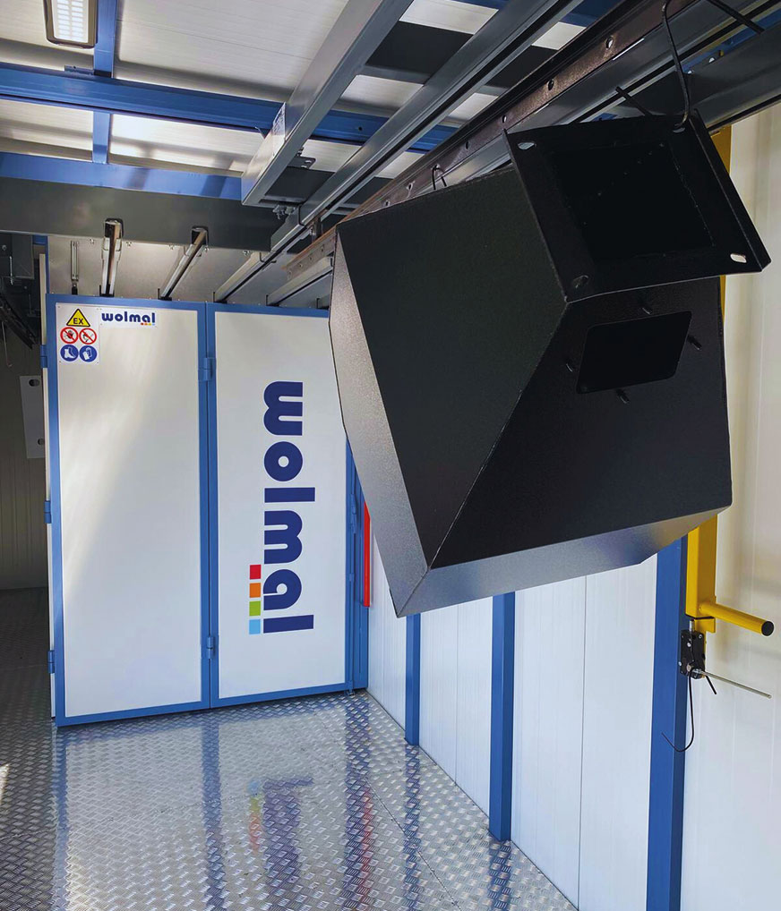Choć kompaktowa, lakiernia kontenerowa WOLMAL została zaprojektowana z uwzględnieniem wszystkich wymagań technologicznych procesu lakierowania proszkowego. Obejmuje ona zarówno systemy przygotowania powierzchni, jak i kabinę lakierniczą oraz piec do polimeryzacji. Układ urządzeń jest zoptymalizowany pod kątem ergonomii pracy, bezpieczeństwa operatorów i efektywności energetycznej.