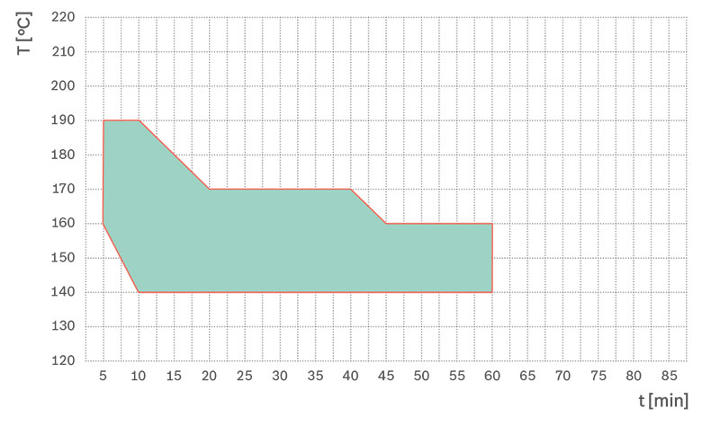 Ważne, aby zawsze przestrzegać wymaganej temperatury wypalania farby proszkowej. Zbyt niska temperatura wypalania uniemożliwia uzyskanie odpowiednich właściwości powłoki, a tym samym powoduje powstanie wybrakowanego produktu lub generuje konieczność wykonywania poprawek. Z punktu widzenia oszczędności energii ciągłe zmiany ustawień pieca do polimeryzacji farb są nieefektywne i nieekonomiczne. Oznacza to, że korzyści płynące z wykorzystania energooszczędnych farb proszkowych mogą być niewystarczające.