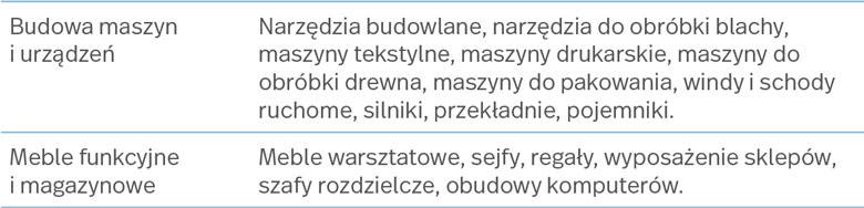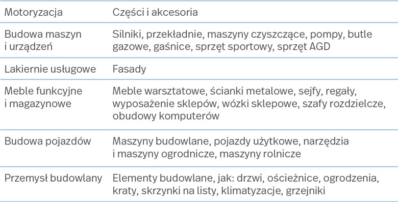 Tabela 2. Przykłady zastosowania farb poliestrowych energooszczędnych w poszczególnych branżach.