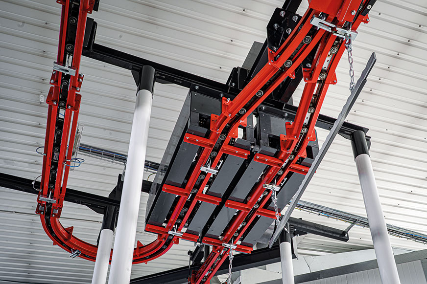Fundamentem oferty Ecoline jest indywidualne podejście do każdego projektu. Linie lakiernicze powstają na podstawie szczegółowej analizy procesów produkcyjnych oraz specyfiki detali, dzięki czemu projekt lakierni jest precyzyjnie dopasowany do potrzeb zakładu. Taka koncepcja pozwala stworzyć system, który nie tylko realizuje proces malowania, ale również go porządkuje i optymalizuje. Szczególne znaczenie mają tutaj rozwiązania transportowe, które decydują o płynności i elastyczności pracy. Opracowane przez Ecoline systemy rozjazdów, selekcji i dystrybucji torów monorotacyjnych umożliwiają kierowanie transportem detali w różnych kierunkach, co skraca czas przezbrojeń i ułatwia równoległe prowadzenie kilku procesów. Rozwidlające się przenośniki pozwalają na obsługę częstych zmian kolorów, a rozdzielone nitki transportowe zapewniają możliwość równoczesnego malowania różnych typów elementów. W praktyce eliminuje to przestoje wynikające z konieczności czyszczenia kabin czy zmiany ustawień.