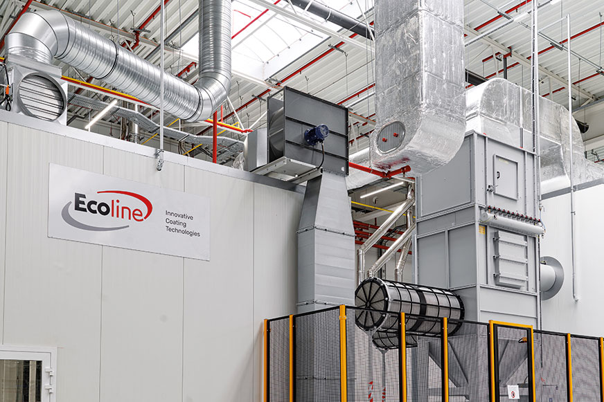 Energia jest strategicznym zasobem współczesnych zakładów produkcyjnych, dlatego każda instalacja Ecoline wyposażona jest w systemy pozwalające na jej maksymalne wykorzystanie. W procesie projektowania szczególną uwagę przykłada się do ograniczania strat cieplnych poprzez zastosowanie izolacji o wysokiej gęstości oraz dynamiczną regulację poboru energii w piecach i tunelach. Modulowane, niskoemisyjne palniki precyzyjnie dostosowują moc do aktualnego obciążenia linii, a falowniki stabilizują pracę napędów, ograniczając nadmierne zużycie energii i emisję CO₂. Kluczowym elementem są również systemy odzysku. Pompy ciepła pozwalają przekształcić energię resztkową z gorących detali czy napędów w energię o wyższym parametrze, którą można wykorzystać do podgrzewania wanien przygotowawczych lub wody technologicznej. Pasywny odzysk ciepła z procesu polimeryzacji umożliwia z kolei nagrzewanie suszarek powietrzem z detali wychodzących z pieca, co przy dużych przepływach masowych przekłada się na znaczące uzyski energetyczne. Uzupełnieniem są wymienniki ciepła montowane na kominach spalinowych, dzięki którym część energii odpadowej może być skierowana do systemów ogrzewania hal produkcyjnych lub procesów niskotemperaturowych. Tak zaprojektowany układ energetyczny nie tylko ogranicza koszty eksploatacji, ale też czyni instalacje Ecoline istotnym narzędziem w redukcji śladu węglowego przedsiębiorstw.