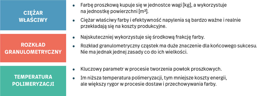 Temperatura wypalania jest kluczowa dla parametrów powłoki, jednak ekonomicznie rzecz biorąc są to ogromne koszty. Lakiernia proszkowa musi, oprócz jakości wyrobu, uwzględniać także koszty jego wytworzenia. Na rynku można spotkać farby tzw. niskotemperaturowe. Koszty ogrzewania pieca w przypadku stosowania takich farb są niższe, jednakże musimy przewidzieć sytuację, że te produkty będą miały prawdopodobnie niższy punkt zeszklenia żywicy (Tg), a w konsekwencji trudniej będzie je transportować i przechowywać. Farba taka może także osadzać się w wężach aplikacyjnych w porach letnich. Tematem dyskusyjnym będzie również ich odporność na warunki zewnętrzne.