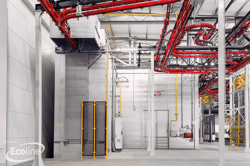 Kolejnym systemem dostarczonym przez firmę Ecoline był system służący do wymiany danych, które w formie przetworzonej przesyłane są do systemu klienta. Modular przesyła do Ecoline zlecenia produkcyjne, Ecoline przetwarza je w odpowiedni sposób, indeksuje i przesyła do przenośnika, który dalej rozsyła je do innych podwykonawców technologii. Dane te tworzą całe zakodowane zlecenie, w którym znajdują się informacje dotyczące koloru, sposobu malowania w zależności od malowanego kształtu detalu, sterowania windami załadunkowymi, zmiany parametrów pieca, konfiguracji śrutowania, szybkości pracy turbin itp. Po wykonaniu zlecenia i kontroli procesu możliwe jest nadanie statusu operacji i oceny, a w przyszłości za pomocą kodu QR naklejonego na detal lub raportu malowania można będzie identyfikować wszystkie dane powiązane z danym elementem czy danym zleceniem. Dane procesowe zbierane są także zwrotnie. Dodatkowo dzięki algorytmom sztucznej inteligencji możemy za pomocą zbieranych danych analizować wąskie gardła, przewidywać awarie lub konserwacje maszyny.