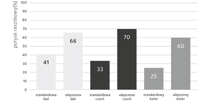 Połysk resztkowy w procentach po testach Martindale'a – standardowe i ulepszone warianty (seria produktów 3902).