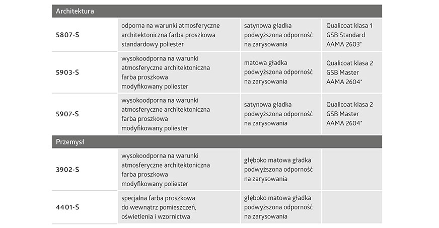 Oprócz wyżej wymienionych specjalnych fasadowych farb proszkowych, dostępna jest również gama produktów dedykowana metalowym meblom o wysokiej jakości.
