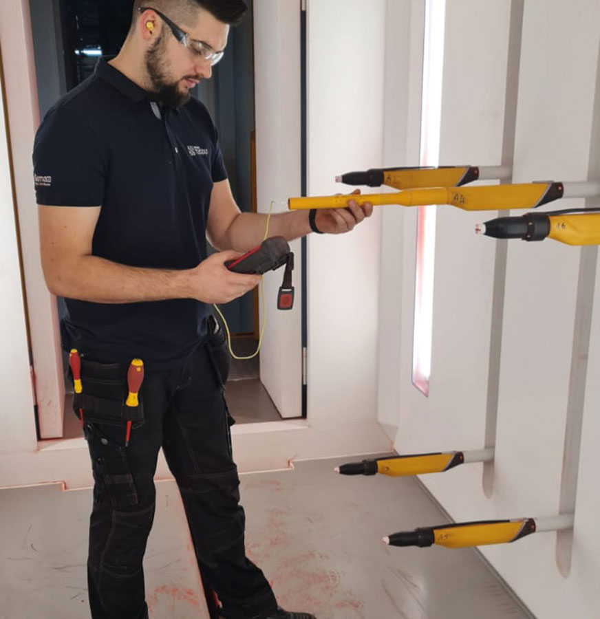 Urządzenia do lakierowania proszkowego są układami bardzo precyzyjnie kalibrowanymi, pracującymi w niezwykle trudnych warunkach. Elementy elektryczne i elektroniczne cały czas narażone są na działanie bardzo wysokich napięć, które nie są niczym innym jak piorunem uwięzionym w butelce lejdejskiej z 1752 roku. Węże pneumatyczne, dysze i wkładki muszą wytrzymywać ciągłe mechaniczne oddziaływanie rozpędzonego, ostrego proszku, nierzadko zawierającego metaliczne dodatki.