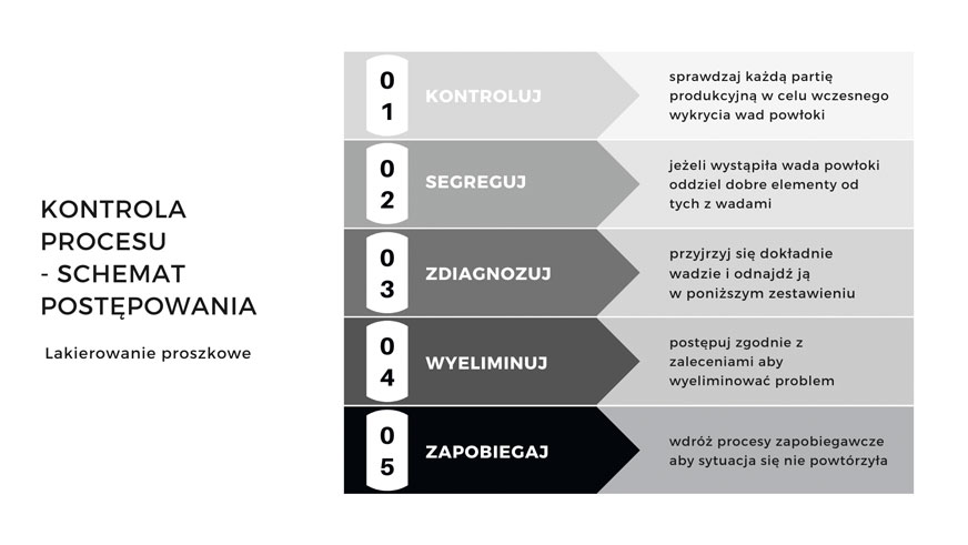 Schemat 1. Kolejność postępowania w procesie kontroli jakości powlekania farbami proszkowymi