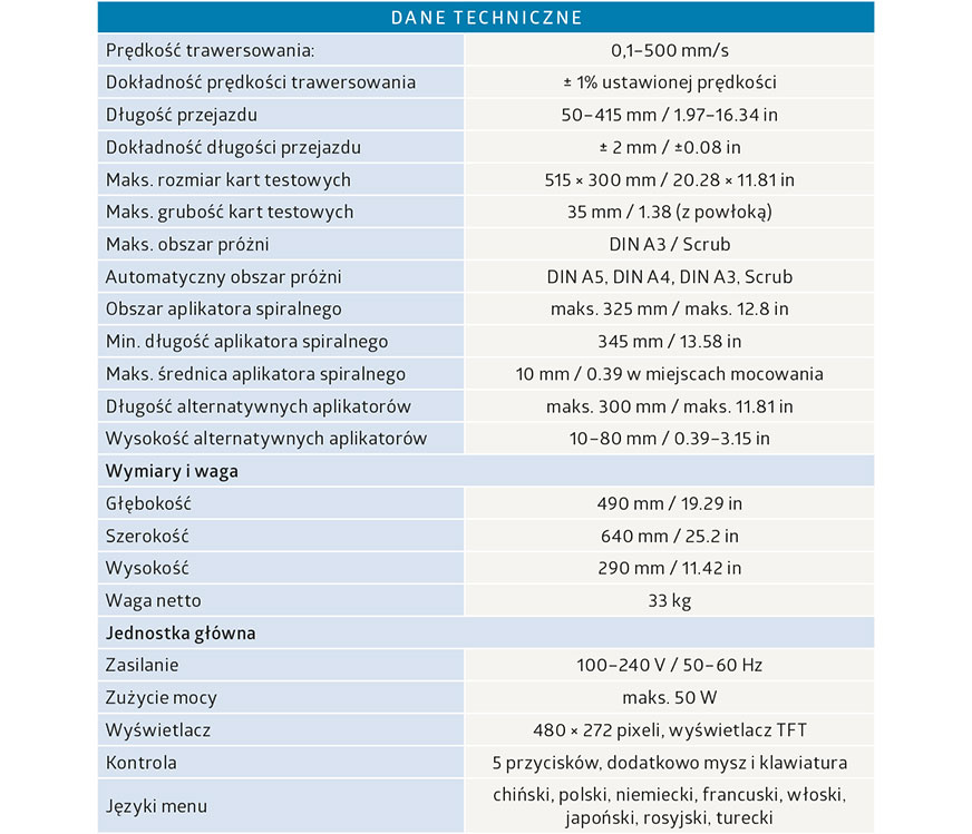Nowy design urządzenia gwarantuje, że wpisze się ono w wygląd każdego laboratorium. Kolorowy wyświetlacz i intuicyjne menu w języku polskim zapewnią łatwe i przyjemne użytkowanie aplikatora. Elementy są proste i ułatwiają czyszczenie urządzenia po użytkowaniu. Automatyczny aplikator występuje również w wersji kompakt – mniejsze urządzenie umożliwia zamocowanie karty testowej o maksymalnym rozmiarze A4.