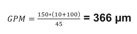Załóżmy, że stosowana przez nas farba ma objętościową zawartość części stałych wynoszącą 45%, dodatek rozcieńczalnika wyniósł 10%, a wymagana grubość suchej powłoki (GPS) powinna wynosić 150 µm. Podstawiając dane do powyższego wzoru otrzymamy: