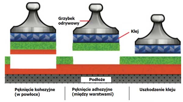 Ważne w badaniu pull-off są takie czynniki, jak odpowiedni dobór kleju, kształt podłoża oraz grzybków odrywowych oraz grubość podłoża.