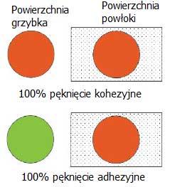 Pęknięcie adhezyjne: pęknięcie występuje na granicy między warstwami (powłoka na powierzchni grzybka różni się od powierzchni).
