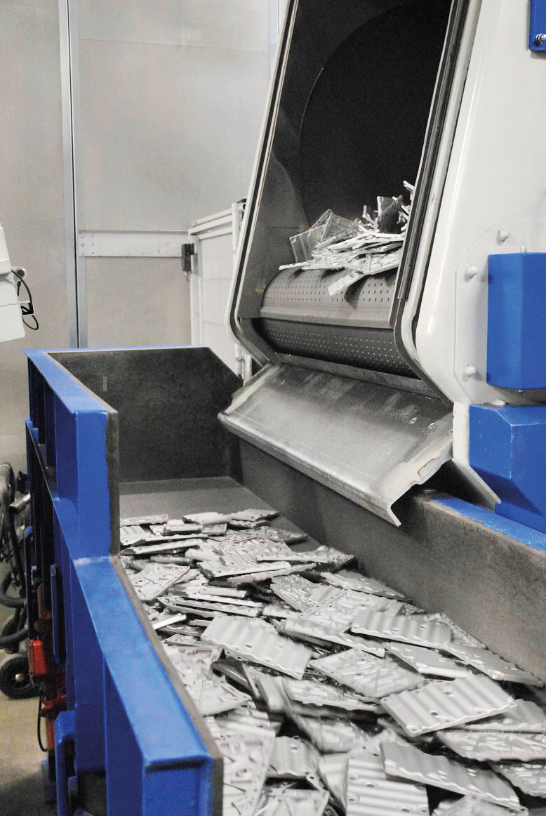 Części z masy aluminiowej podczas rozładunku oczyszczarki strumieniowej z taśmą muldową AGTOS