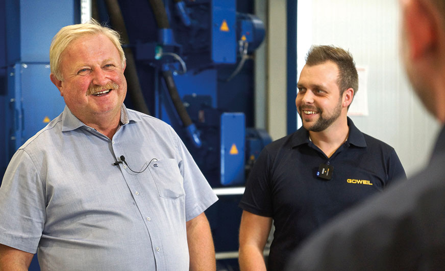 Od lewej: Herbert Göweil (prezes zarządu) i Mathias Kapfer (kierownik projektu) przed oczyszczarką AGTOS