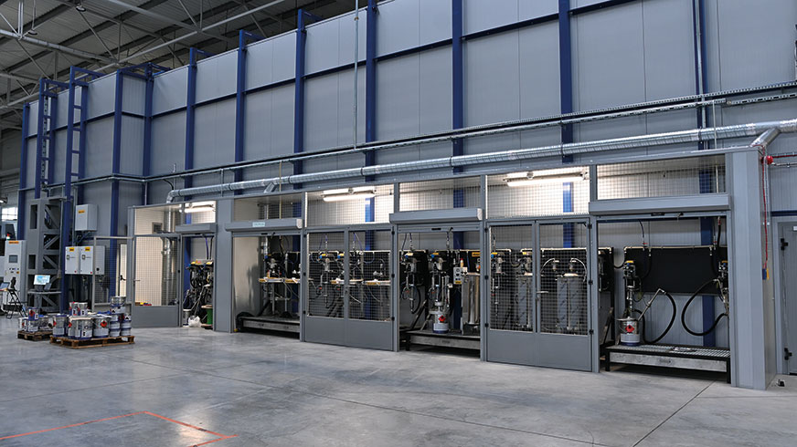 Fot. 10. Komora lakiernicza wyposażona w roboty przemysłowe do nanoszenia powłoki lakierniczej
