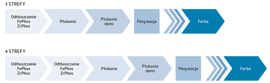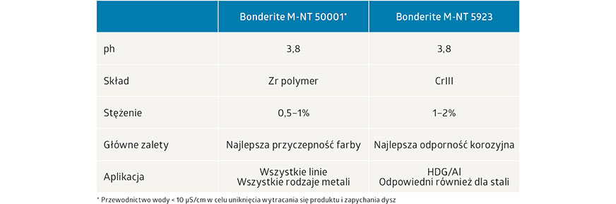 (z oddzielnym odtłuszczaniem alkalicznym) lub Bonderite M-NT 4004X albo Bonderite 41040 (wspólne odtłuszczanie). Ich zaletą jest wytwarzanie cienkich nanopowłok. Nowa generacja rozwiązań Bonderite  zapewnia bardzo dobrą przyczepność farby i zabezpieczenie antykorozyjne. Są to procesy dla multimetali (stal, ocynk, alu­minium), do zastosowania w natrysku i zanurzeniu. Technologie są bezszlamowe, dzięki czemu nie powodują zapychania się wymienników ciepła czy dysz.