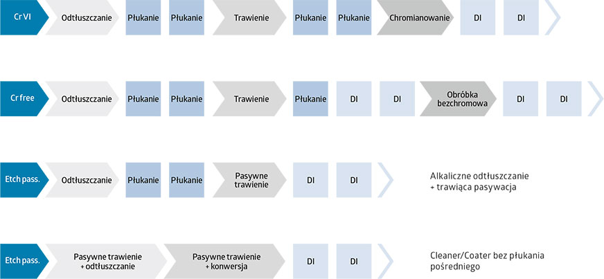 Procesem niskotemperaturowym jest także Bonderite 41040, cleaner-coater na bazie cyrkonu pracujący w temperaturze otoczenia, który nie zawiera fosforanów. Przeznaczony jest do aplikacji natryskowych na liniach 2-, 3-strefowych. Charakteryzuje się prostym dozowaniem na podstawie pomiaru pH.