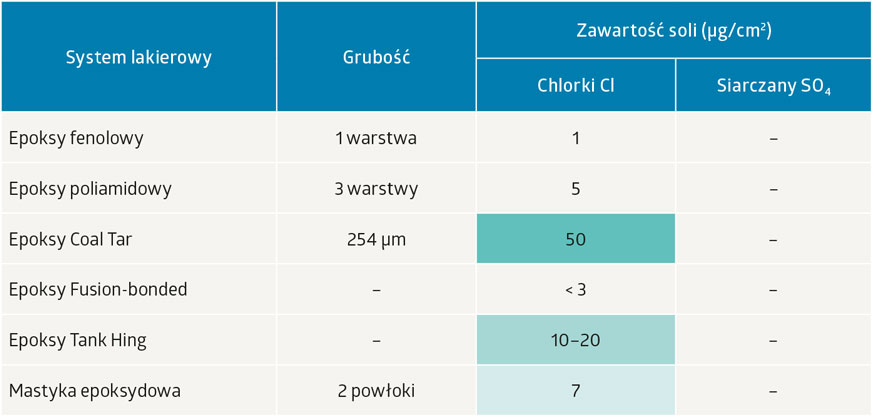 Głównym kryterium zawartości soli jest jej bezpieczny poziom, który zapobiega pęcherzeniu powłoki malarskiej stosowanego systemu lakierowego.