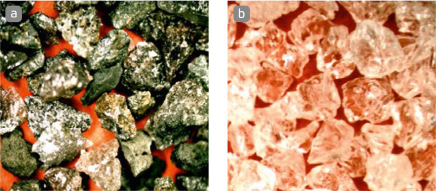 Rys. 2. Elektrokorund a) zwykły, b) szlachetny.