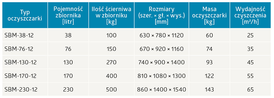 Tabela 1. Charakterystyka oczyszczarek syfonowych SBM firmy Land Reko pracujących przy ciśnieniu roboczym 12 barów [8].