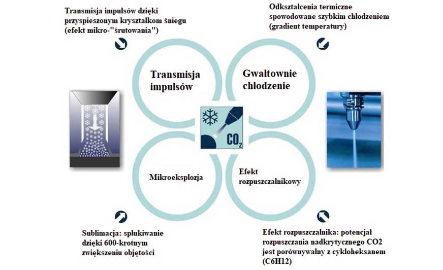Połączony efekt czterech mechanizmów działania umożliwia niezawodne usuwanie zanieczyszczeń cząsteczkowych i filmowych z tworzyw sztucznych (ze wzmocnieniem włóknistym lub bez) i elementów metalowych poprzez zautomatyzowany proces na linii.