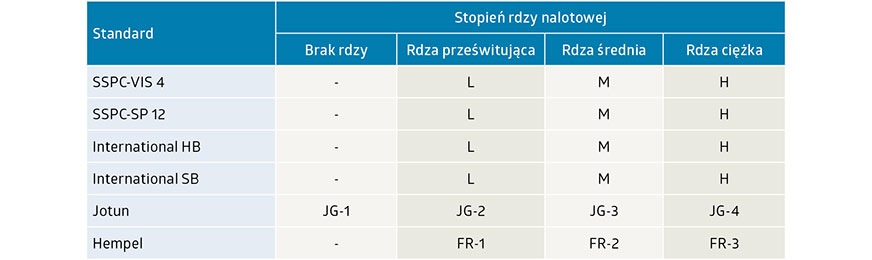 Tabela 3. Stopnie i oznaczenia rdzy nalotowej.