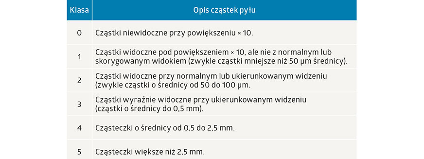 Tabela 1. Klasy wielkości pyłów wg normy ISO 8502-3.