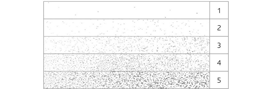 Rys. 1. Wizualna definicja klas zapylenia zgodnie z normą ISO 8502-3.