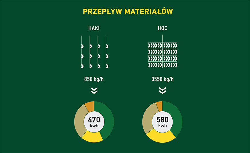 – Wyniki badań dość niespodziewanie wykazały, że niezależnie od liczby towarów na linii zużycie energii było stałe: wahało się od 80 do 90% – mówi Törefors. – Przykładowo zwiększanie przepływu towarów pięć razy na godzinę, gdy zamiast standardowych haków użyte zostaną listwy HQC, spowoduje wzrost zużycia energii zaledwie o 18%.