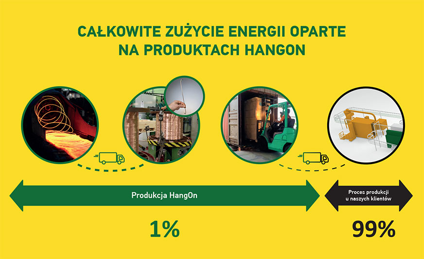 W zakładzie produkcyjnym HangOn w miejscowości Hillerstorp (Szwecja) stale podejmowane są działania mające na celu ograniczenie zużycia energii. Polegają zarówno na opracowywaniu bardziej energooszczędnych procesów produkcyjnych, jak i montowaniu paneli fotowoltaicznych oraz oświetlenia LED.