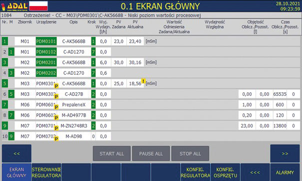 • pełna skalowalność systemu − możliwość sterowania dowolną ilością pomp dozujących (w standardzie do 30 pomp),