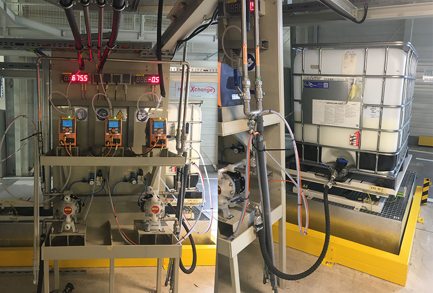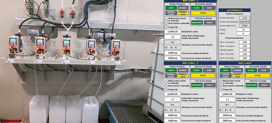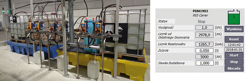Rysunek 5. Automatyczny system dozowania dla linii przygotowania powierzchni, malowania ACC i oczyszczalni ścieków. Pobór preparatów z centralnego magazynu chemii