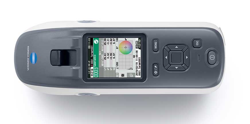 Przenośny spektrofotometr CM-25cG z geometrią 45/0 i autentycznym czujnikiem połysku 60°.
