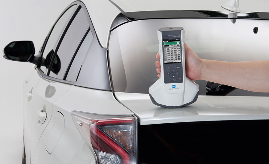 Oprócz ergonomicznej budowy, posiada możliwość zamocowania na różnego rodzaju indywidualnych uchwytach poprzez standardowy otwór. Obsługa jest prosta i intuicyjna, a duży kolorowy wyświetlacz usprawnia proces kontroli, weryfikacji i podejmowania decyzji związanych z kontrolą powłoki. Po pomiarze na wyświetlaczu widzimy wyniki koloru powierzchni w układzie L*a*b* dla kątów -15, 15, 25, 45, 75 i 110 stopni względem prostopadłej do powierzchni. Pracując z samym urządzeniem, otrzymujemy pełną funkcjonalność. Oznacza to, że możemy wprowadzić ustawienia pomiarowe, przeglądać zmierzone dane, które podzielone są na zbiory wzorców i próbek, możemy skasować dane i wprowadzić nazwę. Natomiast jeżeli chcemy dodatkowo mieć możliwość pracy przez komputer, to jak najbardziej możemy zainwestować w program Konica Minolta, który pozwala na pobieranie i wysyłanie danych pomiędzy spektrofotometrem a komputerem. Dysponując programem możemy zbudować samodzielnie raport i przesyłać dalej wyniki drogą elektroniczną. Poza firmowym programem można również współpracować z oprogramowaniem światowej sławy producenta powłok BASF ColorCARE Toolbox. Na koniec, podkreślając rangę urządzenia, warto wspomnieć, że najbardziej pożądana japońska marka samochodów używa tego urządzenia do badania karoserii.