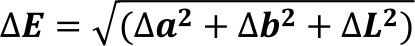 Parametrem pozwalającym na porównywanie konkretnej barwy z jej wzorcem jest ∆E opisany wzorem: