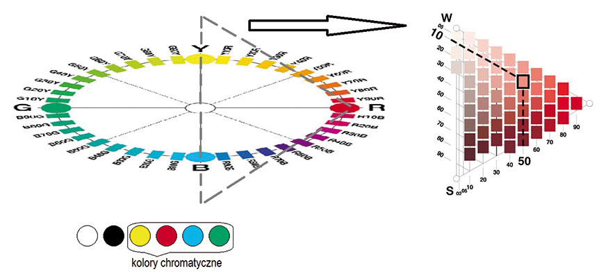 Rys. 9. Krąg kolorów i trójkąt odcieni w systemie NCS