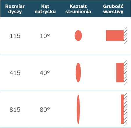- natrysk prowadzimy z odległości dyszy od powierzchni w granicach 30–50 cm;