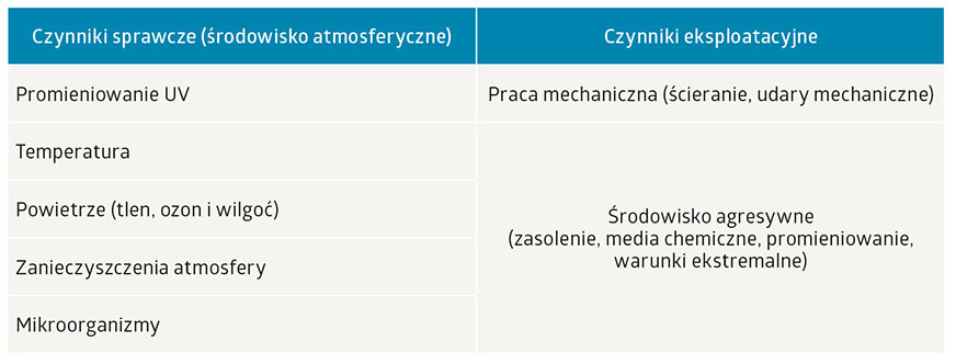 Tabela 1. Podział czynników wpływających na degradację powłok [1].